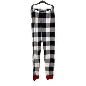 Kids unisex pj set black and white buffalo plaid with red trim.