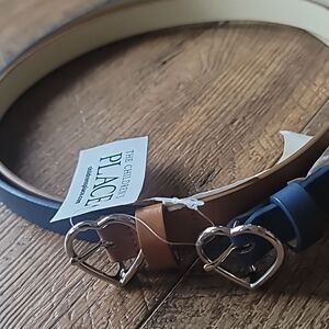 The Children’s Place 2 Pack Uniform Belts Navy Brown Heart Buckle Size 8-16