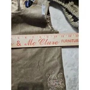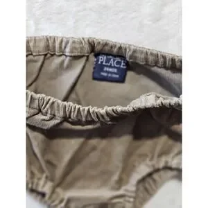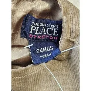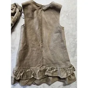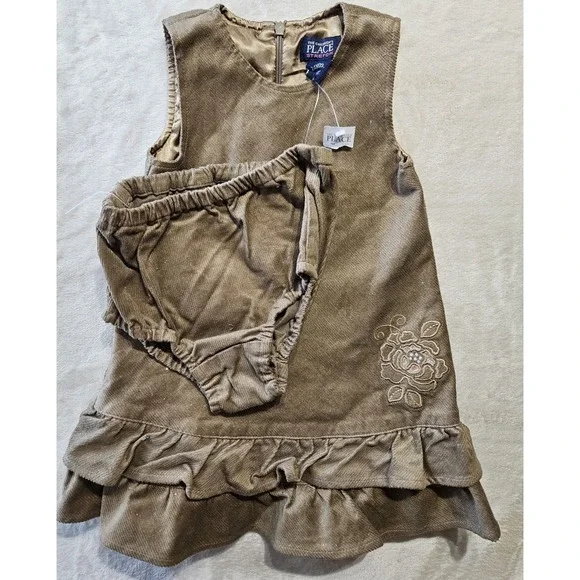 Adorable toddler corduroy dress and matching bloomers set from The Children's Place in size 24 months. This sleeveless jumper features soft brown corduroy fabric, ruffle hem detailing, and a delicate embroidered floral design. Includes matching elastic waist bloomers for a complete outfit. Perfect for fall photos, holidays, or everyday wear.
