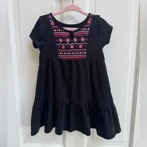 The Children's Place 3T Girls Black & Pink Aztec Ruffled Short Sleeve Dress