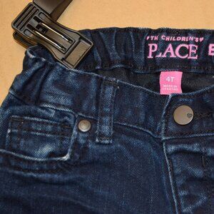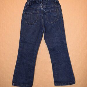 Gently used pair of The Children's Place toddler girl bootcut jeans, size 4T. These dark-wash denim jeans are in great condition and have an adjustable elastic waistband for a comfortable fit. Perfect for everyday wear, casual outings, and pairing with a variety of tops and shoes. Comes from a smoke-free and pet-friendly home.