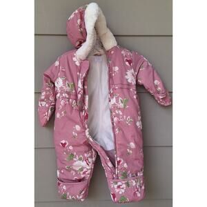 The Childrens Place Baby Toddler Girl Pink Floral Snowsuit Winter Outfit 9-12 mo