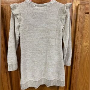 Charming beige dress with cable knit pattern. Features ruffled shoulders. Ideal for casual outings.