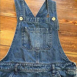 Chic denim overall dress with front pocket. Perfect for casual outings.