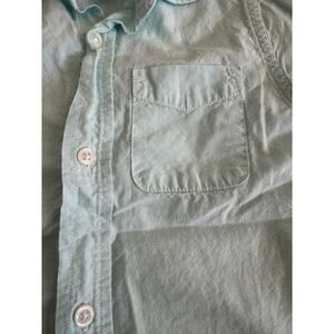This shirt is in excellent condition! There are no rips, tears, pulls, or stains. I personally purchased this for my boys, but they have since outgrown it and it is time to pass it on to someone new! This shirt is made from 100% cotton. It is lightweight and a pretty pale blue. It is perfect for spring and summer! You can easily dress it up or down!