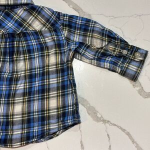 The Children’s Place Boys Blue Flannel Plaid Button Down Dress Shirt 6-9 Months