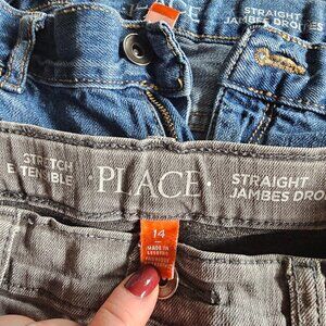 Bundle of 2 pairs of The Children’s Place Boys Straight Jeans in size 14 — a great mix of everyday denim colors!