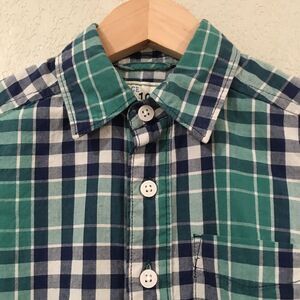 The Children's Place Boys Sz XS 4 Shirt Blue Plaid Button Up 100% Cotton Preppy
