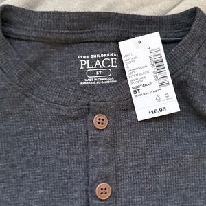 Dark gray henley top with button accents. Ideal for everyday comfort.