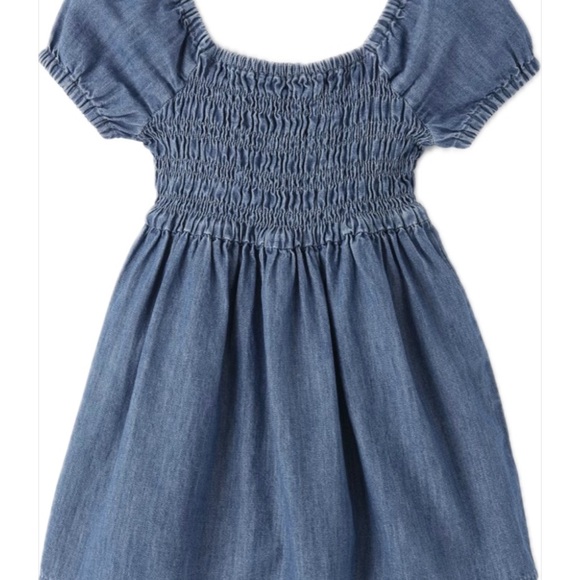 Stylish denim dress with gathered bodice. Perfect for casual wear. Soft and comfortable fabric. Size; 4T 5T.