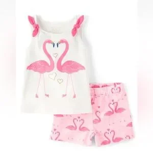 The Children’s Place Flamingo Print Kids Set Pink and White🦩Tank & Shorts NWT