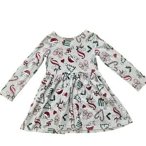 The Childrens Place Girls Dress 3T Long Sleeve Candy Cane Unicorn Christmas Holiday