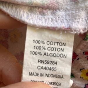 What a cute jean jacket from the Children’s Place. It is a pretty floral pattern with pink and yellow flowers. It features a collared neck, long sleeves and a button down front. Some pictures show the white is yellowed, but it is not. It is a nice, crisp white and the flowers are bright and colorful. It is in excellent used condition. Perfect to wear for those cooler evenings.