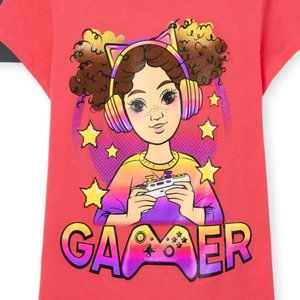 - 1 graphic tee with "GAMER" and girls graphic design at front with glitter