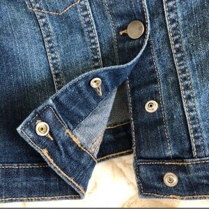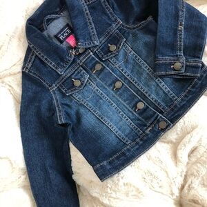 Little girls jean jacket from Children’s Place. Features two hand pockets, two mini chest pockets and button closures.