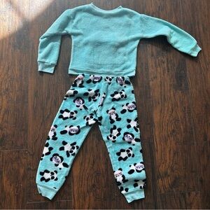 UsedThis pajama set from The Children's Place features a cozy blue top paired with matching black and white panda print pants. The elastic cuffs and waistband ensure a comfortable fit, making it perfect for a snug night's sleep.