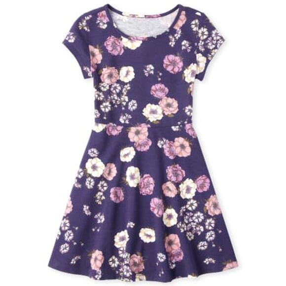 The Children's Place Girls Purple Short Sleeve Floral Dress Youth Size Large