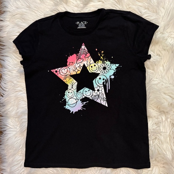 The Children’s Place Girls Rainbow Star Graphic Tee Black Size 10/12