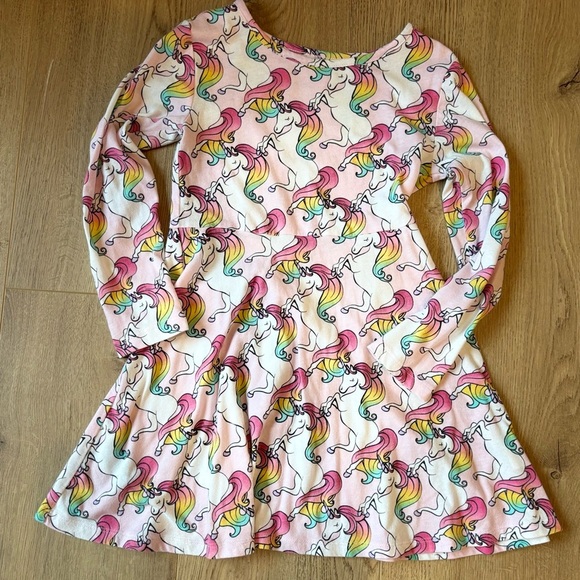 Charming dress with pastel unicorn design. Soft and playful style.