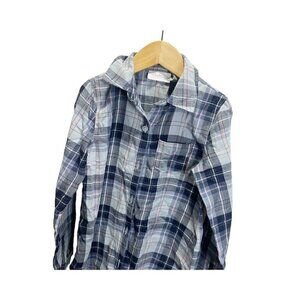 The Childrens Place Girls S 5/6 Button Up Plaid Shirt Pink Blue Long Sleeve