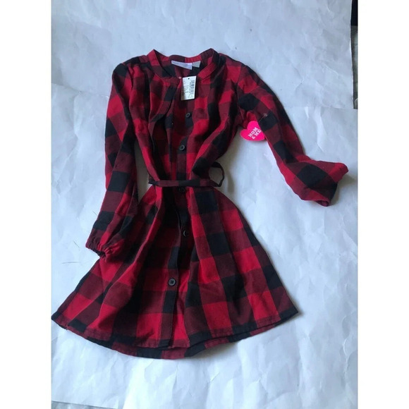 NWT The Childrens Place kids/girls Buffalo Plaid Shirt Dress Long Sleeve with Tie Size S/P 5/6