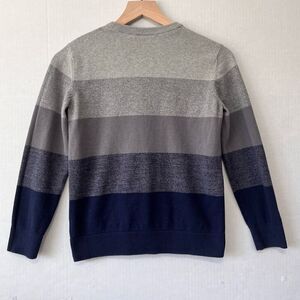 Boys Gray Ombre Striped Sweater Rib Knit Crew Neck Sleeve Cuffs And Hem 100% Cotton