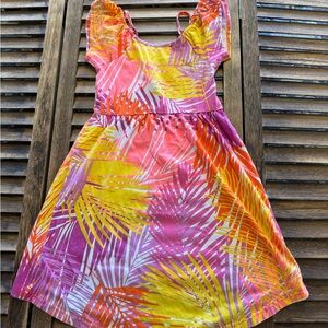 The Children's Place Hawaiian Pink and Yellow Palm Dress Size Small 5/6 High low fun hemline.