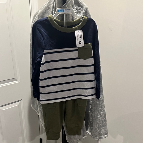 The Children's Place Navy and Olive Striped Set