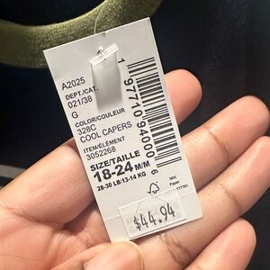 Navy and white striped top with olive pocket. Olive pants included.