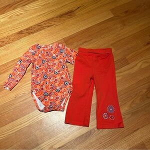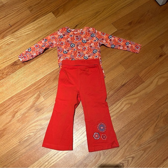 Bright orange top with floral pattern. Matching orange pants with flower detail. Comfortable and stylish. Super comfy and cozy! Great for any occasion. Like new condition! Bundle and save!