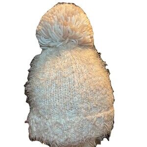 The Children's Place Pink Fuzzy Knit Beanie PomPom Hat Emoji Patches Youth XL