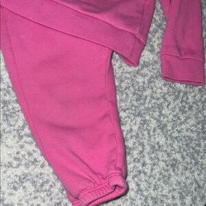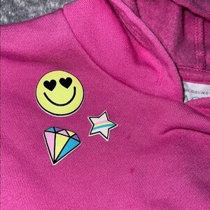 Charming pink hoodie and jogger set. Features fun patches including a rainbow and smiley face. Perfect for fall you little one it’s gone be warm and precious Size 12 to 18 Months
