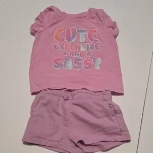 Adorable pink matching set. Features a playful graphic tee and comfy shorts. Perfect for casual wear.