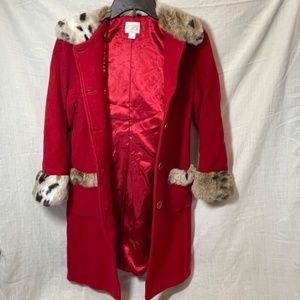 The Children’s Place Red Girls Dress Coat with faux animal print collar & cuffs