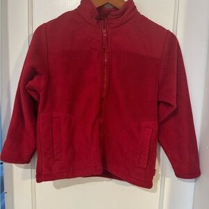 Cozy red jacket. Full zip front. Soft fleece material. Perfect for chilly days. Bin 10 item 29.