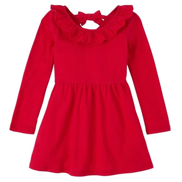 The Children's Place Skater Dress 12-18 Months Red Long Sleeve Ruffles Bow