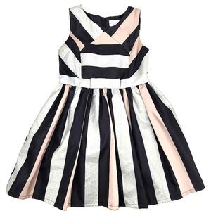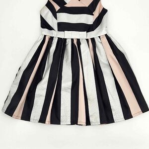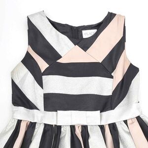 The Children's Place Girls Metallic Colorblock Jacquard Semi Formal Dress - Pre-owned - Size 12 - Color Black, Light Pink & Metallic Silver Flat Lay Measurements: - Approx. 14.5" arm pit to arm pit - Approx. 13.5" waist - Approx. 29.5" length - Zipper closure at back - Bow detail at the waist - Lined - Formal - Body made of 95% polyester/5% metallic jacquard - Sparkly, Party, Dance - Inv# V-012023-IROD