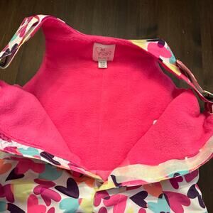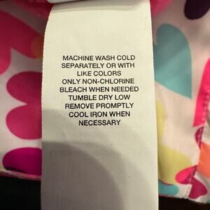 In great pre-loved condition with a little fuzz on the front Velcro enclosure, but no stains or tears observed. Elastic around ankles to keep feet nice and dry. Heart print.