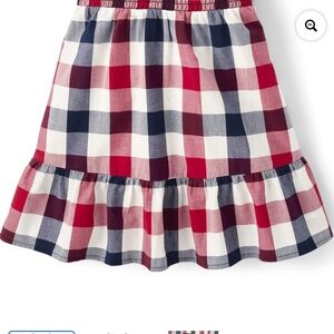 Red White Blue, Gingham Plaid, Pullover, V-Neck W/ Rouching, Sleeveless, Ruffle Hem, Stretch Waist, Smocked Bodice, Back Cutout, Bow, Allover Print, 100% Cotton, Size XL (14), NWT.