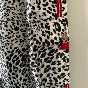 The Children's Place, Sz 14 kids, Cheetah spots sweatpants, material body 100% polyester, lining 65% polyester 35% cotton, trim 100% cotton, preowned, good condition, pull on, zipper on legs.