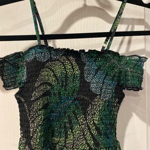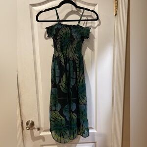 The Children's Place Tropical Leaf Print Woven Off Shoulder Girls Dress Sz 7/8