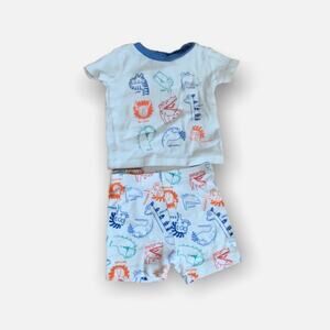The Children's Place Two Piece Short-Sleeve Shorts Dinosaur PJS. Baby boy size 0-3 months. Adorable multi-color dinosaur print on white pajamas. This style is perfect for summer! Worn once, if at all! (Weather was cold by the time baby fit into these!)