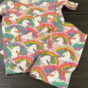 Vibrant pajama set with unicorn and rainbow design. Soft and comfortable fabric. Perfect for bedtime fun.