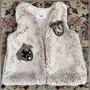 The Children's Place, Upcycled, Preppy Light Grey Faux Fur Full Zip Vest, sz 5T