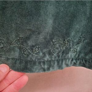 This jumper has roses embroidered around the bottom hem and underside of jumper is lined.