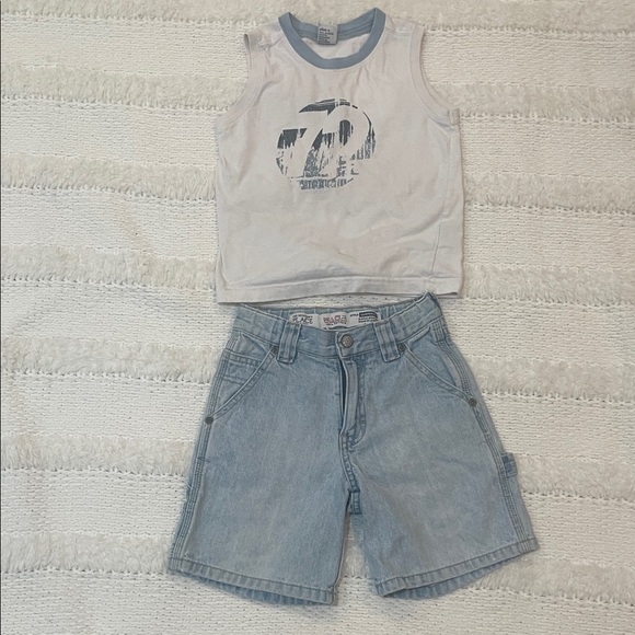 Stylish kids matching set. Includes sleeveless top and shorts. Comfortable and casual.