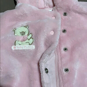 Keep your baby girl warm this winter with this beautiful pink all in one. Excellent condition. No stains or rips. Cute little bunny tail on the back.
