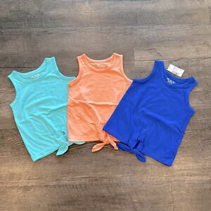 Brand new in original package/with tags (only removed from plastic packaging to take some photos of each piece) The Children’s Place tank top 3-piece set. Size 4/XS little girl’s. Aqua blue, coral and cobalt blue sleeveless tops with tie detail in front.