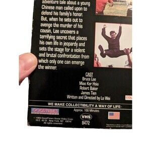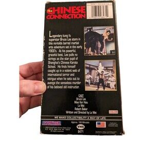 Lot of VHS tapes which features the iconic Bruce Lee in "The Chinese Connection" and "Fists of Fury" directed by Lo Wei, Wei Lo, and Wei Luo. The films are classic in the foreign films genre. Both VHS is in the NTSC signal standard and has a rating of R. It is not a former rental and is in full screen edition. The movie is in English language and was made in the United States. This bundle is perfect for collectors and fans of Bruce Lee and Chinese cinema.