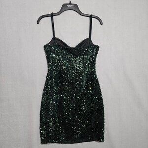 The Christmas Party Dress Velour Sequined Sparkle Stretch Sz Medium Mini Coctail Forrest Green